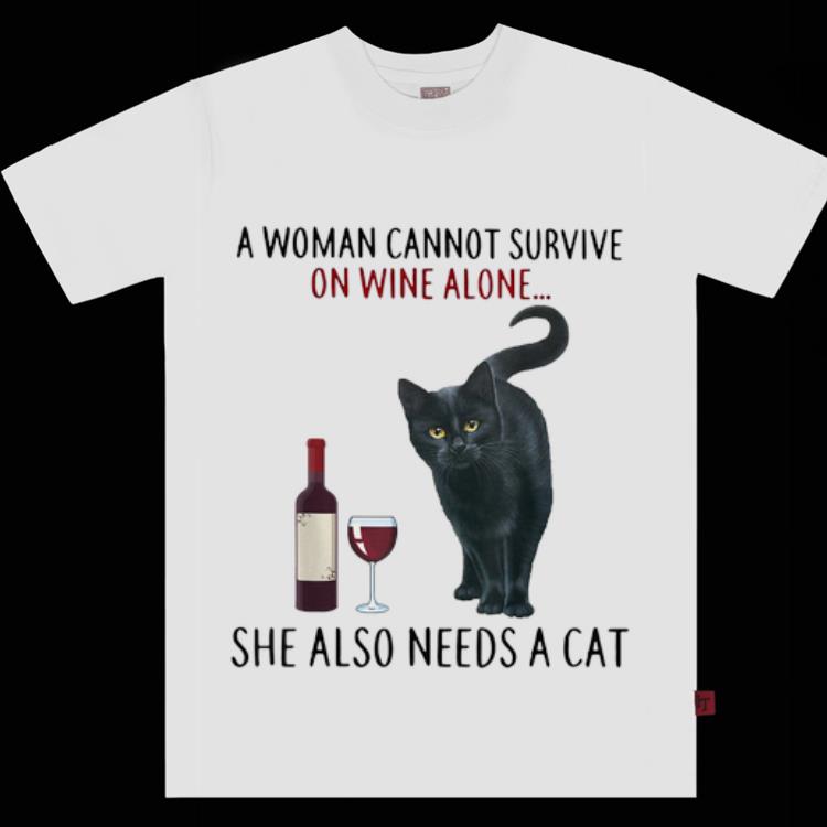 A Woman Cannot Survive On Wine Alone She Also Needs A Cat Shirt Online Shoping