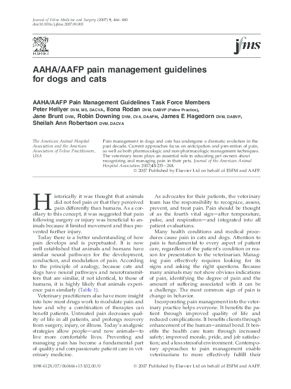 Pdf 2015 Aaha Aafp Pain Management Guidelines For Dogs And Cats