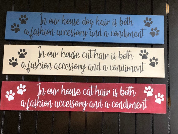 Amazon Com Ruskin352 In Our House Cat Dog Hair Is Both A Fashion Accessory A Condiment Wood Sign Cat Sign Dog Sign Funny Dog Sign Funny Cat Sign Pet Home Kitchen
