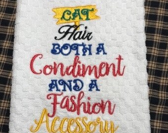 Cat Hair Both A Condiment And Fashion Accessory Cute Whimsical Kitchen Tea Bar Towel Funny Humorous Gift For Pet Cat Animal Lo Cat Tea Towel Cat Hair Cat Towel