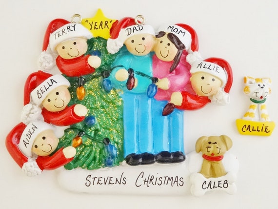 Family Of 6 With Dog Or Cat Added Personalized Ornament Etsy