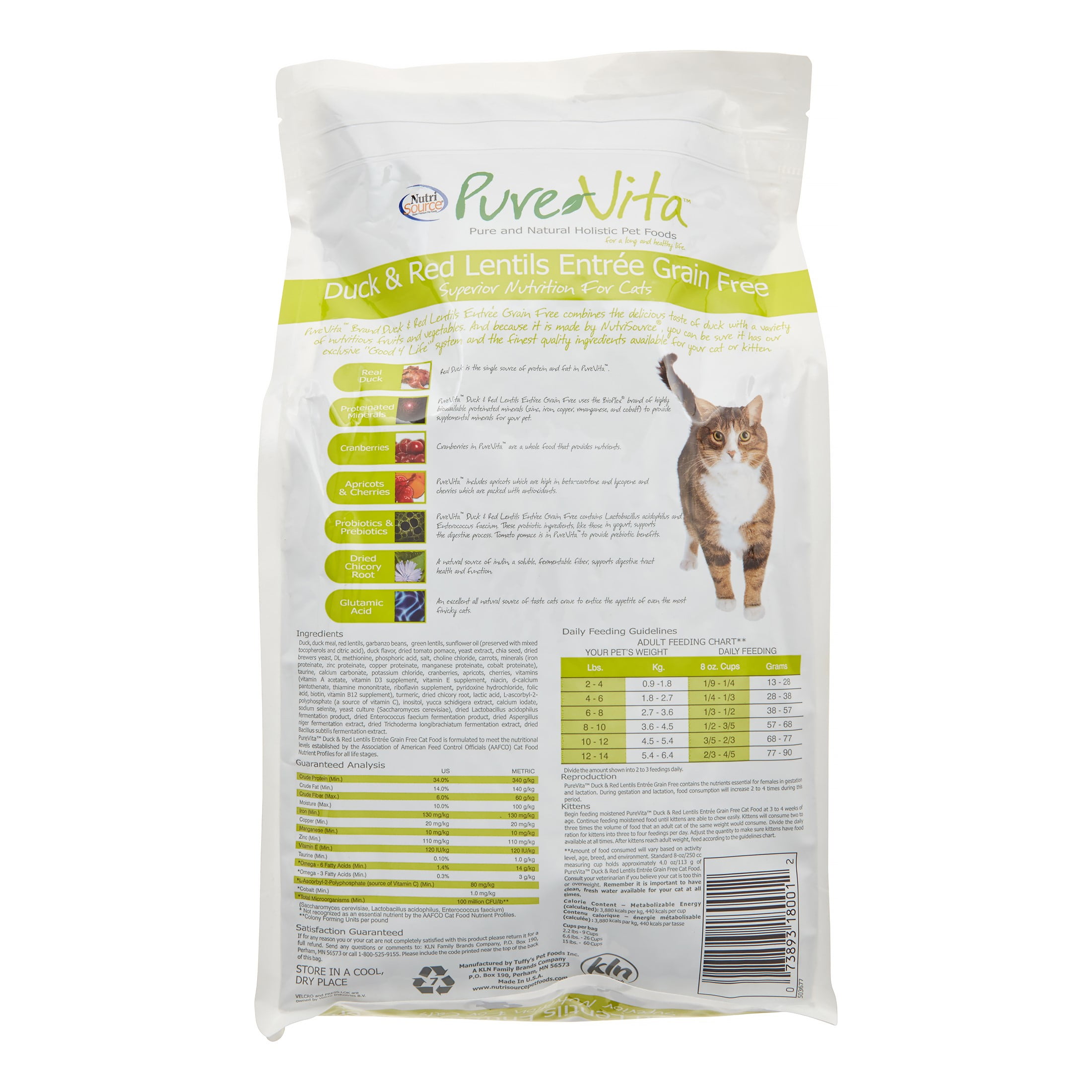 Pure Vita Grain Free Duck Red Lentils Entree Dry Cat Food 15 Lb Dry Cat Food Red Lentil Grain Free