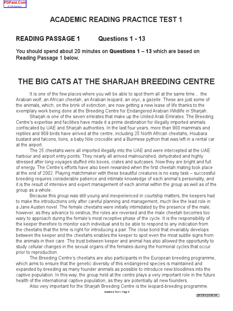 Academic Reading Practice Test 1 The Big Cats At The Sharjah