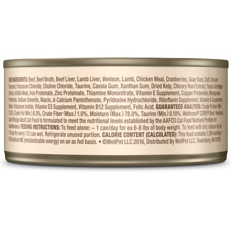 Wellness Core Natural Grain Free Beef Venison Lamb Canned Cat Food Review Oliveknows