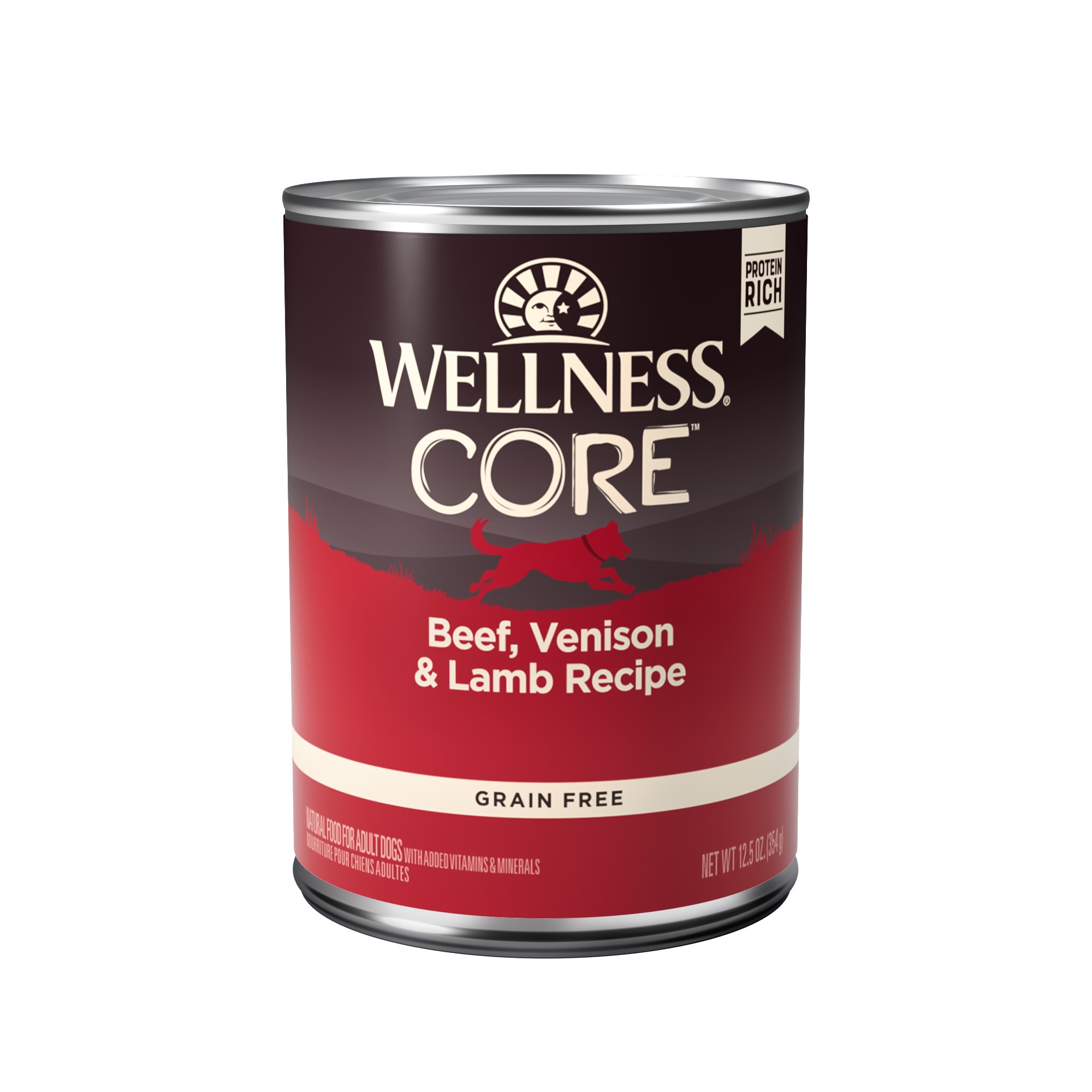 Wellness Core Grain Free Beef Venison Lamb Formula Canned Dog Food 12 5 Oz Case Of 12 Chewy Com